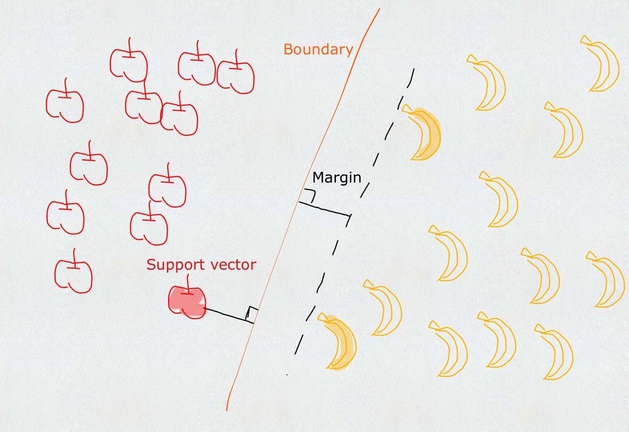 支持向量机(SVM)可以白话为:试图找到一个木棍放置的最佳位置,使得木棍的两边有尽可能大的间隙。
