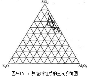 将坯料和原料的氧化物组成换算为R₂O-Al₂O₃-SiO₂三元系统,再通过代数方法或图解法求解。具体步骤如下: