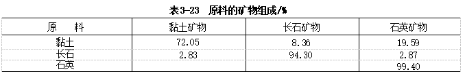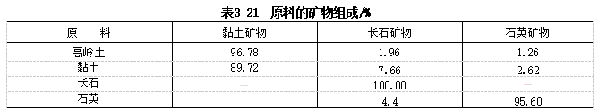 高岭土32 .59%、黏土35 . 15%、长石24 .97%、石英7 . 29%