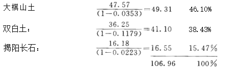 (3)根据原料组成计算坯料配料比。
