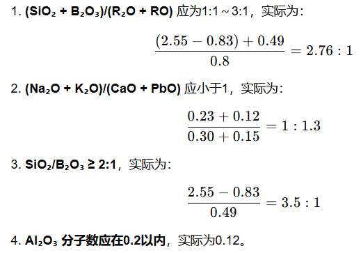 均匀熔化:在确定酸性氧化物与碱性氧化物的比例时,必须考虑PbO、B₂O₃和碱金属组分在高温时的挥发量。一般要求熔块中(R₂O+B₂O₃)/(R₂O+RO)在(1:1)~(3:1)之间。