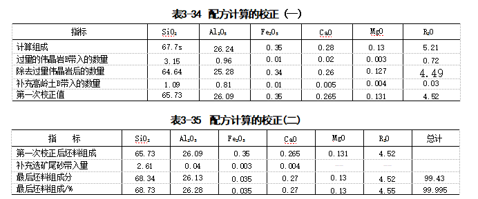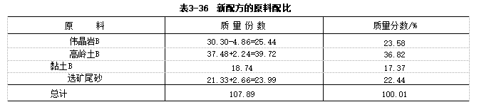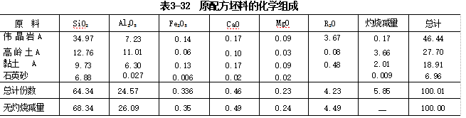 例3-11 卫生陶瓷坯料重配