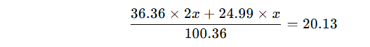 解得x=17.4,2x=34.8。