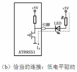 AT89S51任一端口要想获得较大的驱动能力,要用低电平输出。因此,输出设备接口电路设计为灌电流负载。典型接线方式如下图。