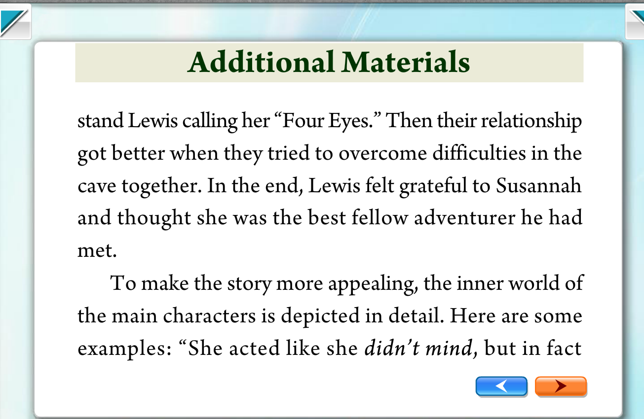 8.He knew that she couldn’t stand people calling her Four Eyes, and now he regretted having given her that name, especially seeing that it was her glasses that had saved them both. When they met up with the search party, Susannah and Lewis were faced with a barrage of questions, some even from the police and journalists.