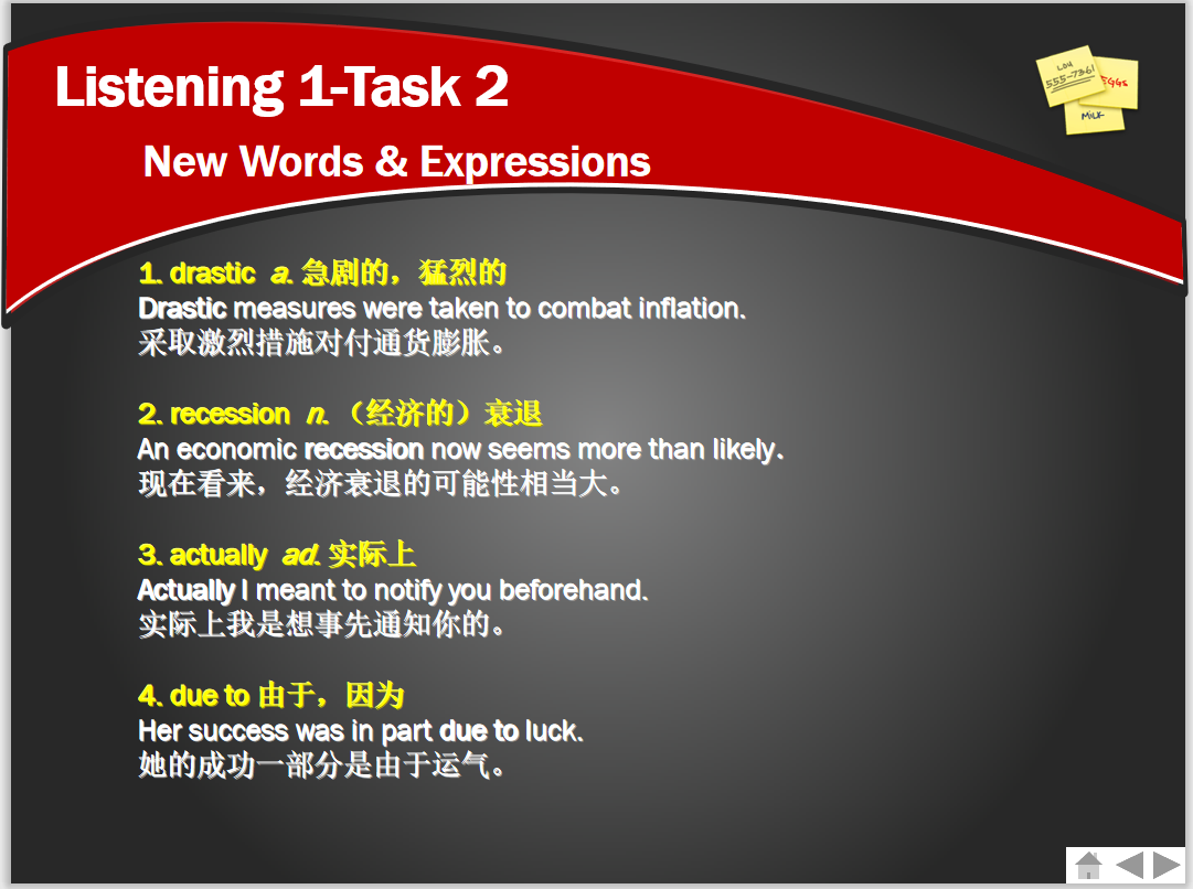 2).课内完成U校园Unit 8 第一部分听力练习:Listening 1 TASK 1&2;Watching 1 TASK 1。