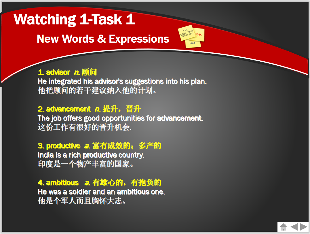 4、课内完成U校园 Unit 8 第一部分听力练习:Listening 1 TASK 1&2;Watching 1 TASK 1。