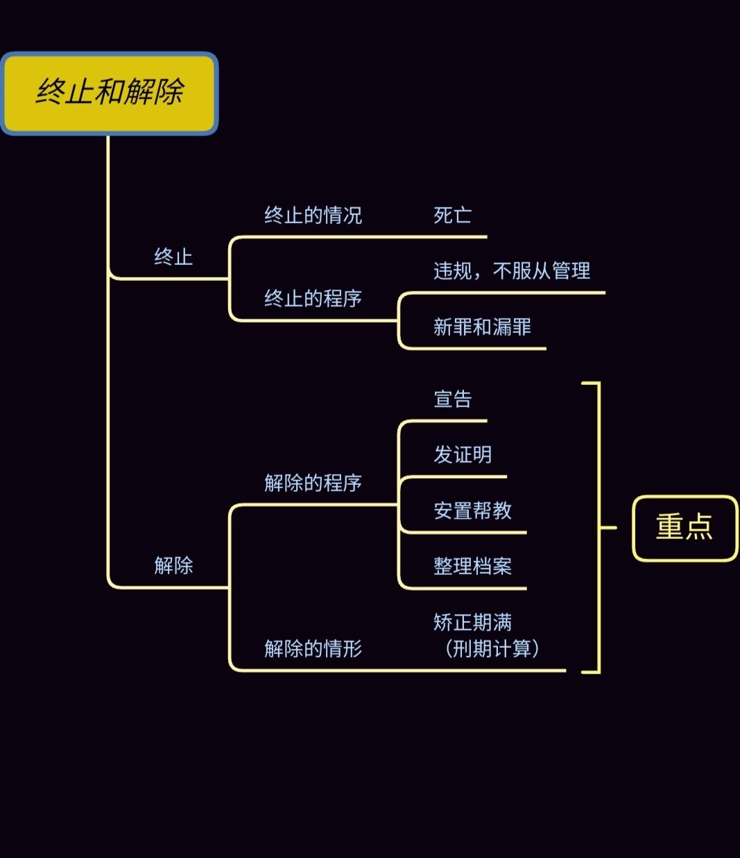 第四十五条社区矫正对象被裁定撤销缓刑、假释,被决定收监执行,或者社区矫正对象死亡的,社区矫正终止。