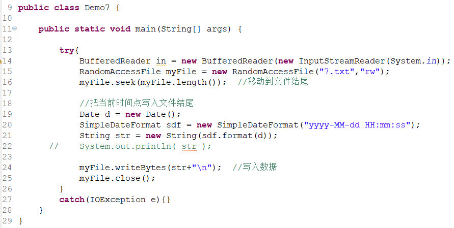 【例 Demo7.java】模仿系统日志,将操作的当前时间点数据写入到文件( 7.txt )尾部。