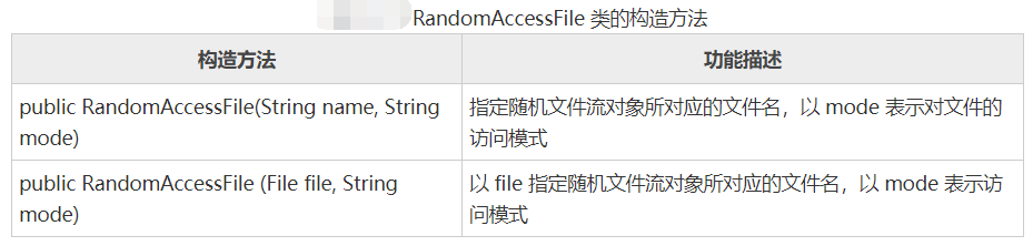 RandomAccessFile类是Object类的直接子类,包含两个主要的构造方法用来创 建RandomAccessFile 的对象