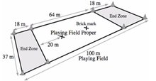 1.场地 - 得分区 18M, 争夺区 64M, 长100M * 宽37M
