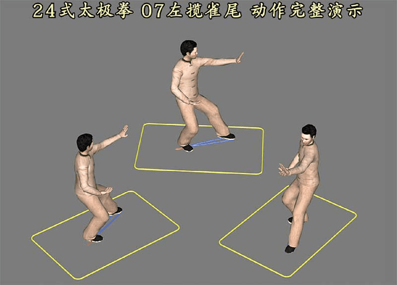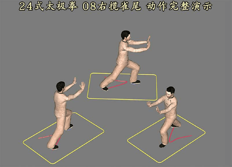 5、转腰摆臂 6、坐腿后捋 7、转腰搭手 8、弓步前挤