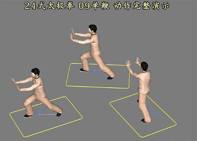 1、 左转摆臂 2、右转摆臂 3、勾手收脚 4、转体上步 5、弓步推掌