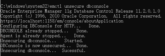 第三步:关闭配置环境变量的命令提示符窗口,重新以管理员身份打开新的命令提示符,执行: emctl unsecure dbconsole,出现以下界面代表修改完成