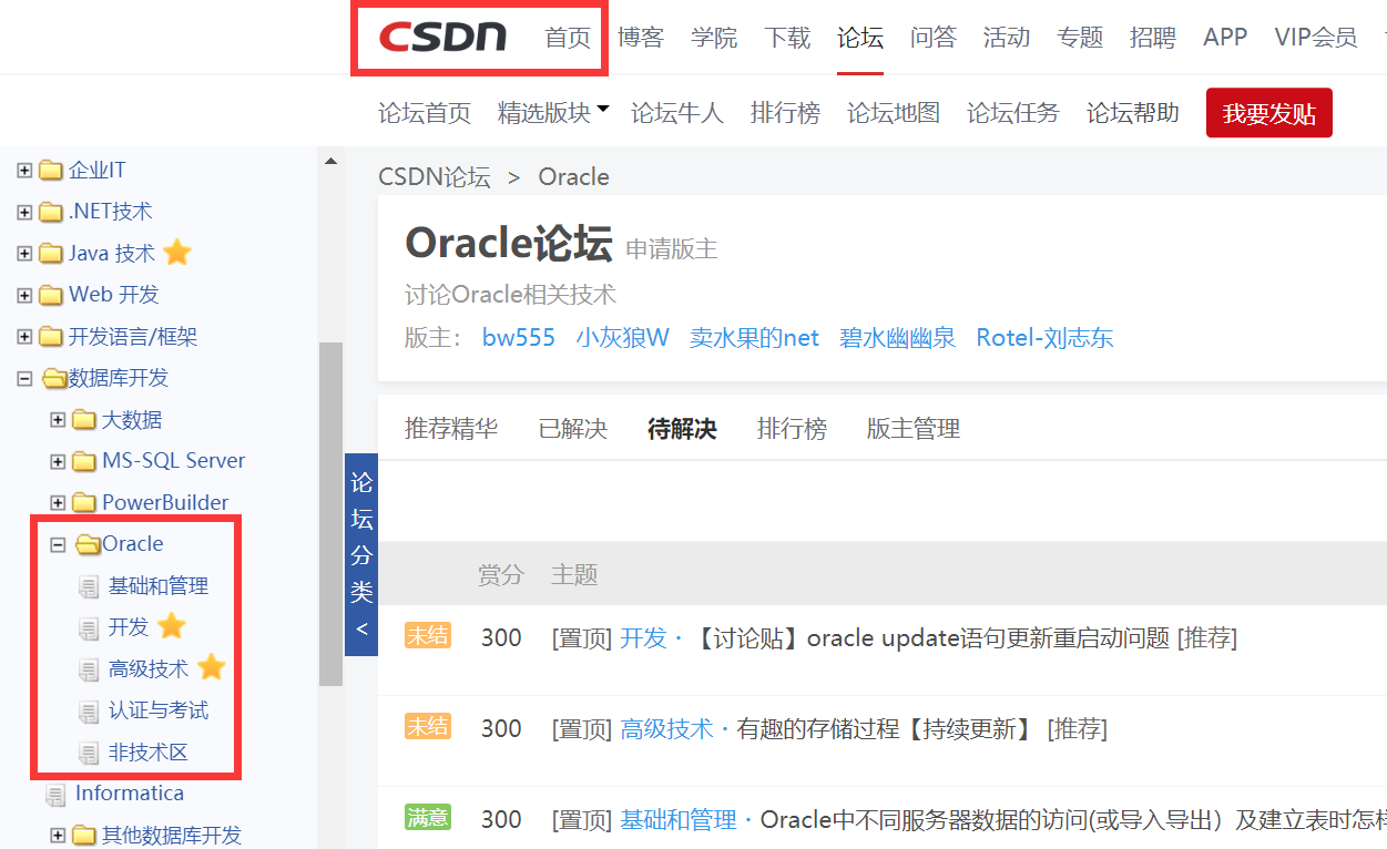 1. CSND论坛(Oracle板块): https://bbs.csdn.net/forums/Oracle