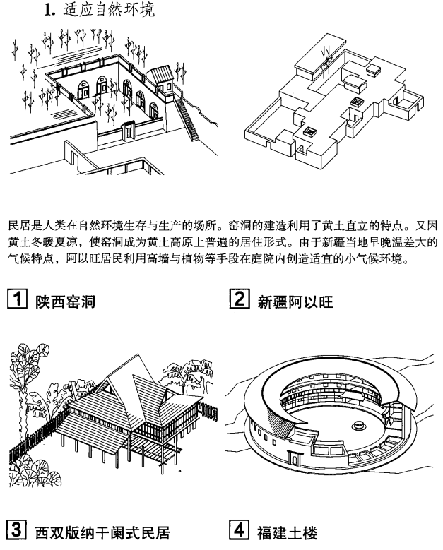 整体性建筑及其构成空间环境的各个要素形成的整体 , 体现建筑环境在结构和形态方面的整体性。