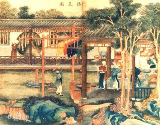 据《天工开物》记载,在商周时期植物染色工艺得到广泛应用发展,当时植物染料在品种及数量上都达到了一定的规模,周礼天官中有染人官职,掌管染丝帛,也有掌管“染草”之职。