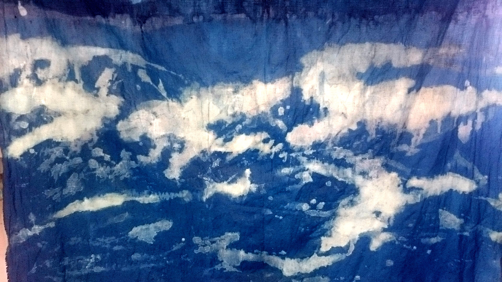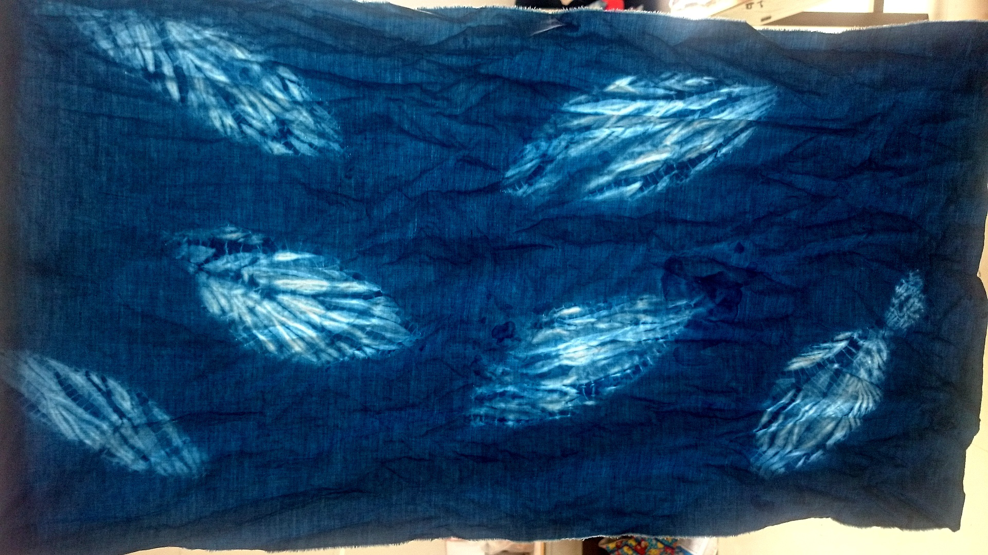 基本原理:使用针线在布上缝制设计好的图形,之后抽拉收紧。由于针脚线束扎在一起,内部便不会浸染上色。