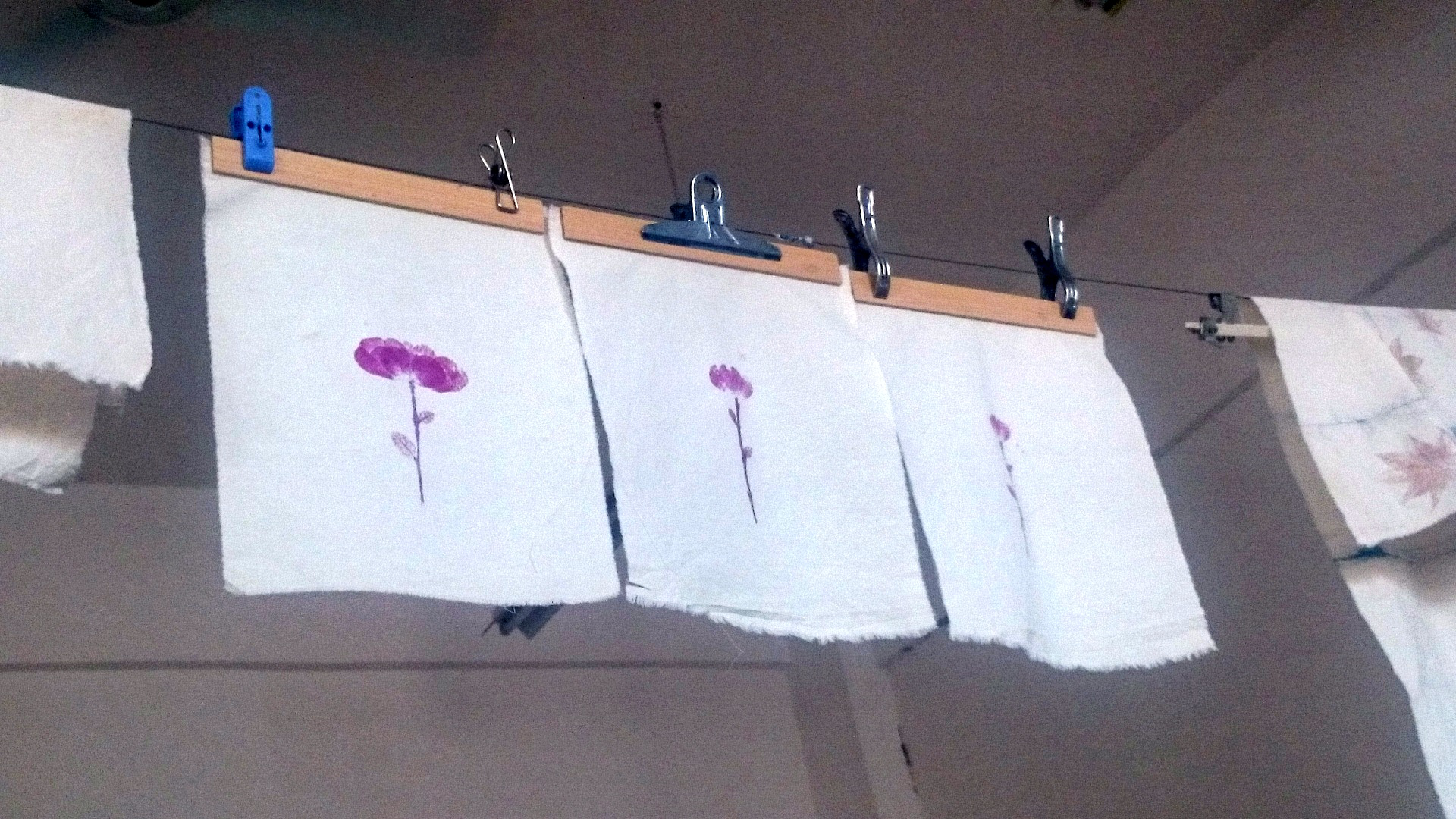 基本原理:拓染是用击打敲拓的手法将新鲜材料与布相结合。