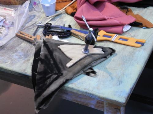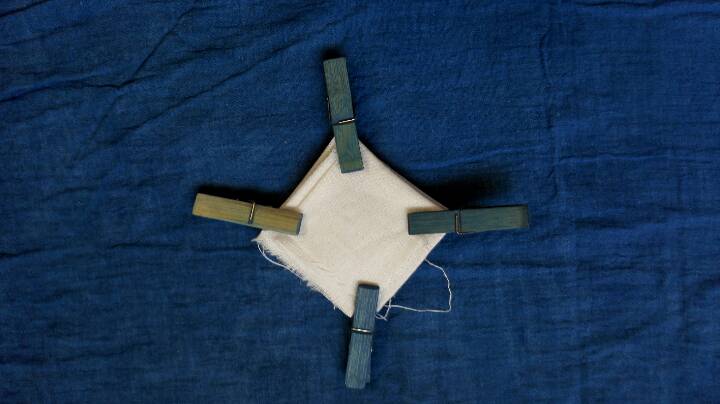 夹染,主要是利用织物被夹固以后,染液难以渗入的特点而产生花纹。因此,如何准确地控制染液的渗透变化,是制作夹染的关键所在。要恰到好处的出现渗透花纹,与染色的时间、夹固的松紧、面料的吸水性、染料的上染性能和染液的温度等因素有关,这只有在实践中逐渐摸索,掌握染色技艺。