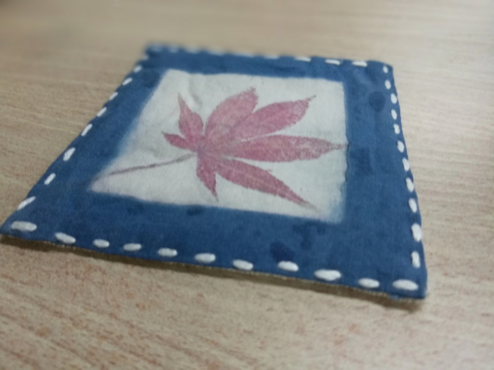 过程:就是采用拓染的方法将枫叶拓染到留白的中间形成精致的构图