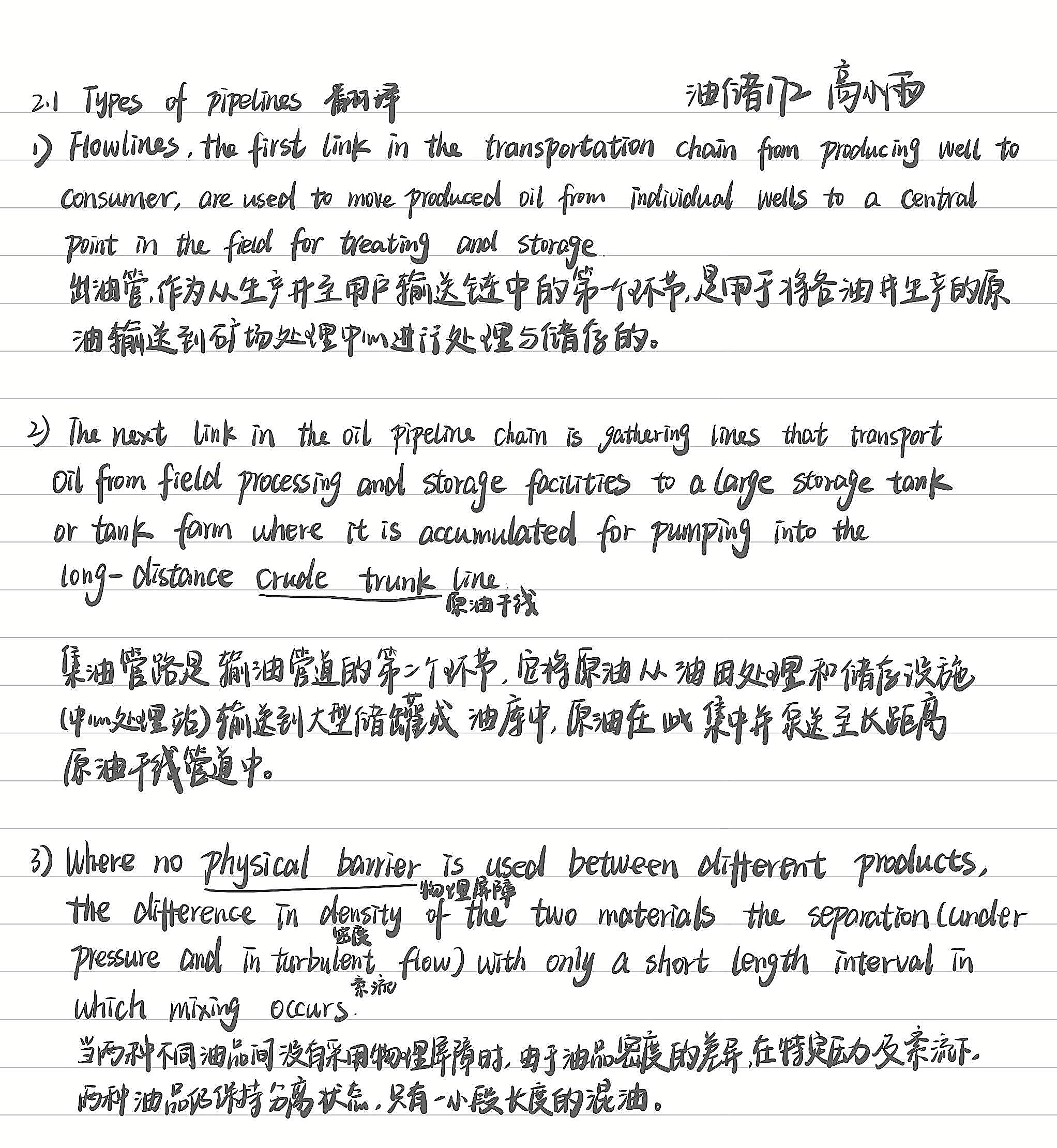 2)The next link in the oil pipeline chain is gathering lines that transport oil from field processing and storage facilities to a large storage tank or tank farm where it is accumulated for pumping into the long-distance crude trunk line.