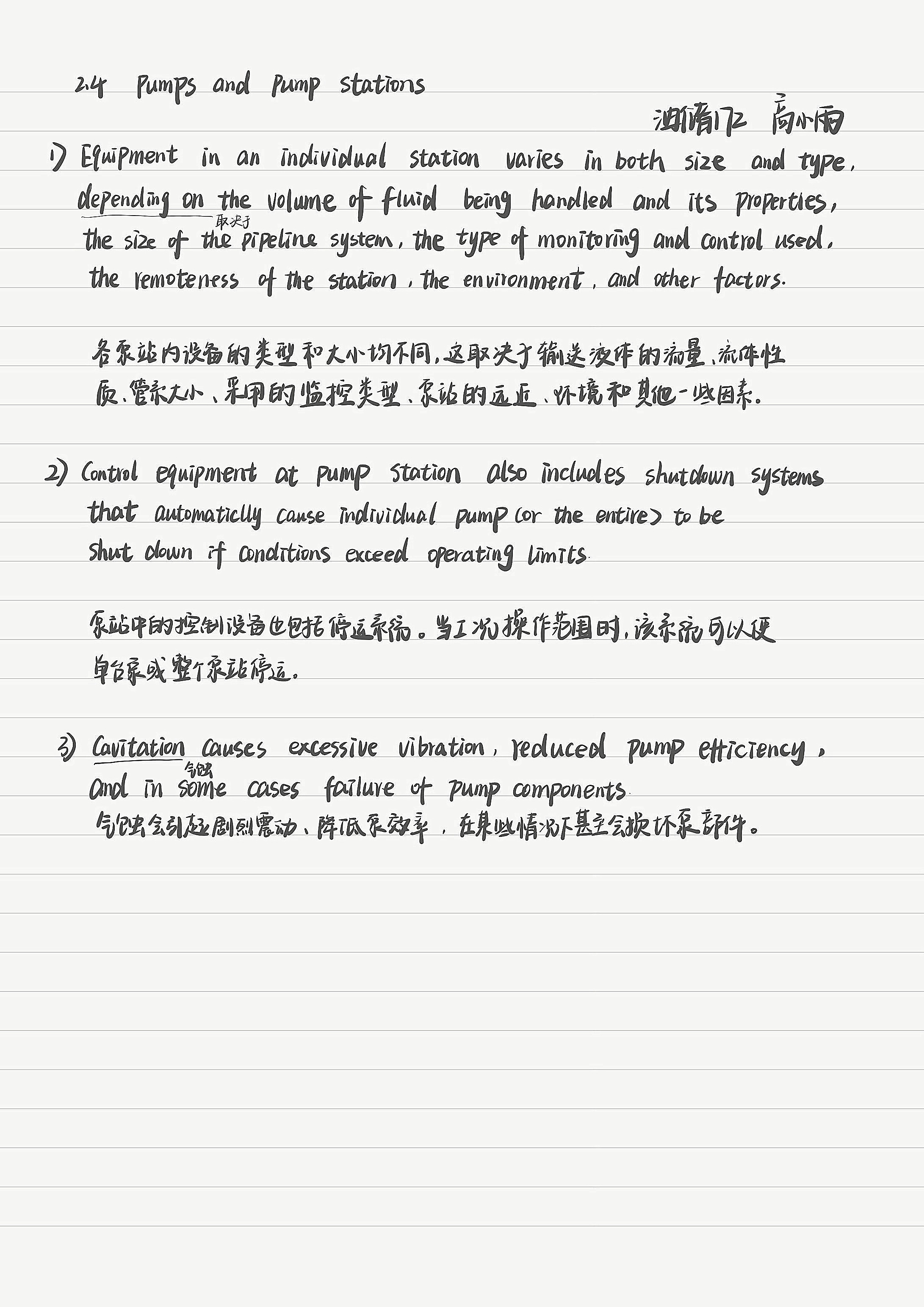 1)Equipment in an individual station varies in both size and type, depending on the volume of fluid being handled and its properties, the size of the pipeline system, the type of monitoring and control used, the remoteness of the station, the environment, and other factors.