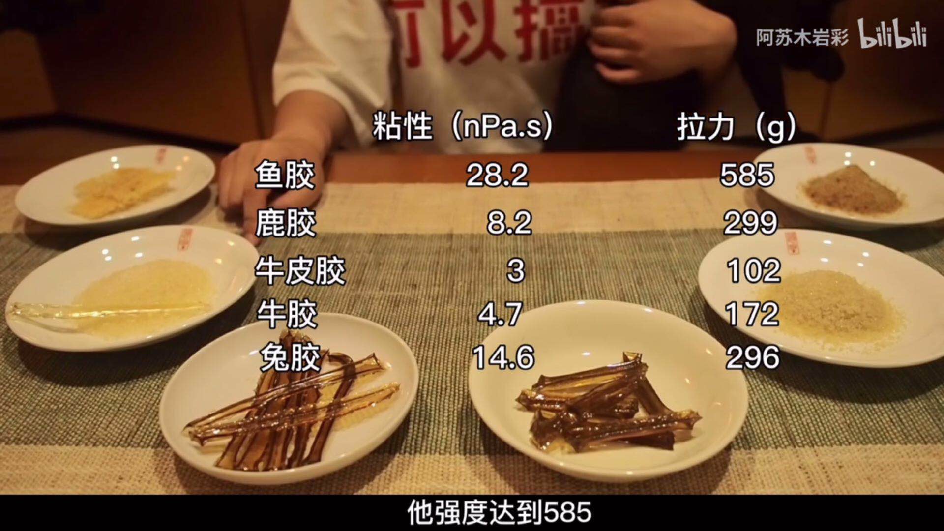 不同的胶的粘性和拉力不一样;溶点、凝固和遇到水后膨胀率都不一样。食物的明胶的黏性相对小一点,比较柔软,溶点也低,凝结的温度比较高,在广东的冬天十来度左右的天气,它就会容易冻住了。比如兔胶,如果按照平时的比例,它的膨胀程度远远超出我想象的范围,它需要很多水去稀释,不然就是固态的。我建议工笔画用牛胶,它是颗粒状态的,牛皮胶是由牛皮而熬制成的,牛胶的粘性比较大,也比较硬,溶解的温度要求比较高一点,凝结的温度也比较低,由于耐水性比较好用来画工笔画比较合适。日本画材店买的鹿胶,它根据软硬的程度区分等级。如果是软韧鹿胶,是加了一些柔韧素的。