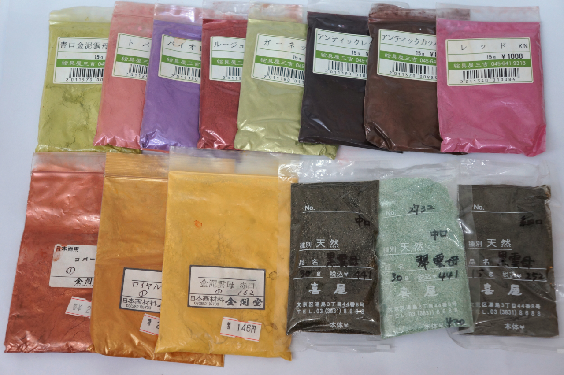 2)准天然岩绘具:就是用天然的色素染成的颜料,天然的色素加上一些其他的底材,它的制作方法就跟化学的颜料是一样的。