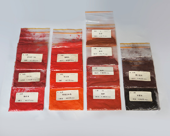 3朱,是水银和硫磺以一定的比例混合制成的颜料。银朱是人工做出来的红色,通过不同的比例,硫磺跟水银的比例不同,温度不同,做出不同颜色的银朱。所以银朱的品种是很多的。在日本我们可以买到很多种不同颜色银朱。辰砂是天然的矿石研磨的,是天然的红色,可以有粗颗粒而银朱没有。它们的化学分子式是一样的。黑朱,是吧银朱加热之后烧黑了,它可以变黑的。