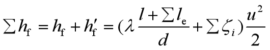管路系统中的总能量损失常称为总阻力损失,是管路上全部直管阻力与局部阻力之和,其计算通式可写为