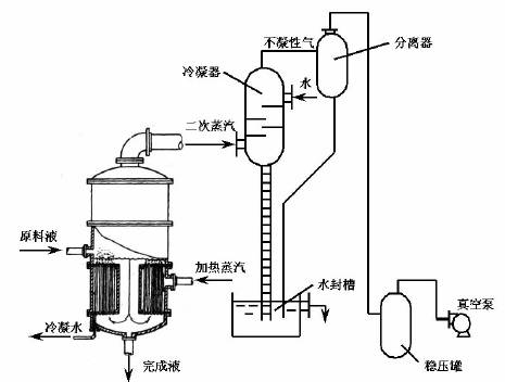 生产中最简单的单效真空蒸发,且多为水溶液单效蒸发——二次蒸汽不加利用的蒸发