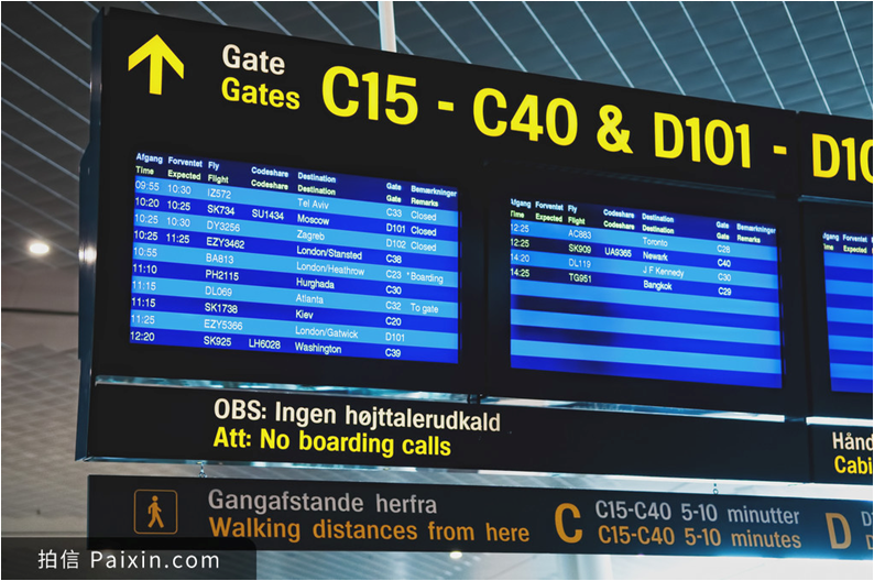 There are different terminals for arrivals and departures.( 机场有不同的航站楼用于抵港和离港。)