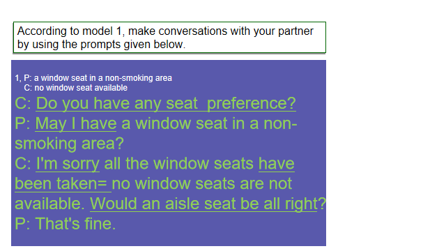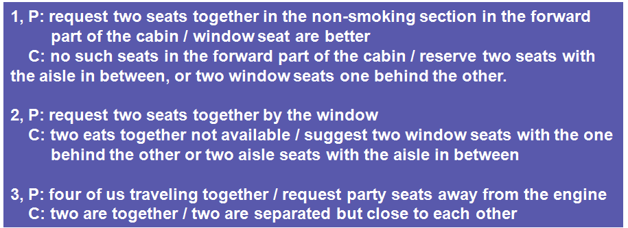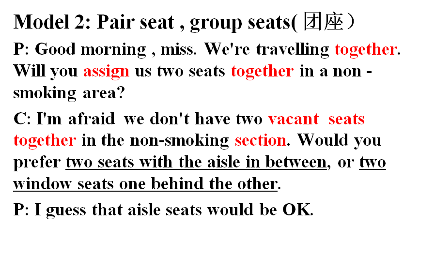 Would you prefer two aisle seats , with the aisle in between?(两张靠过道的座位,隔一个过道,可以吗?)