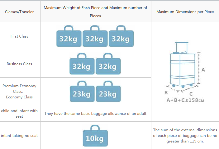 6. Passengers holding first tickets may carry 2 pieces within the total weight of 5 kg onto the plane.