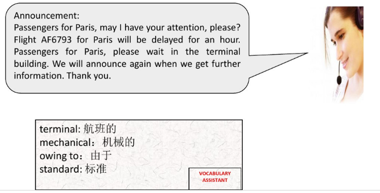 ①The flight was delayed owing to the thunderstorm at Guangzhou airport.
