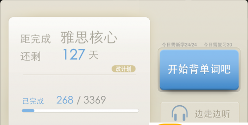 设置完毕后点击“开始背单词吧”按钮,伴随着刀剑切下东西“唰”的一声以及按钮一分为二的动画效果,背单词的过程开始了