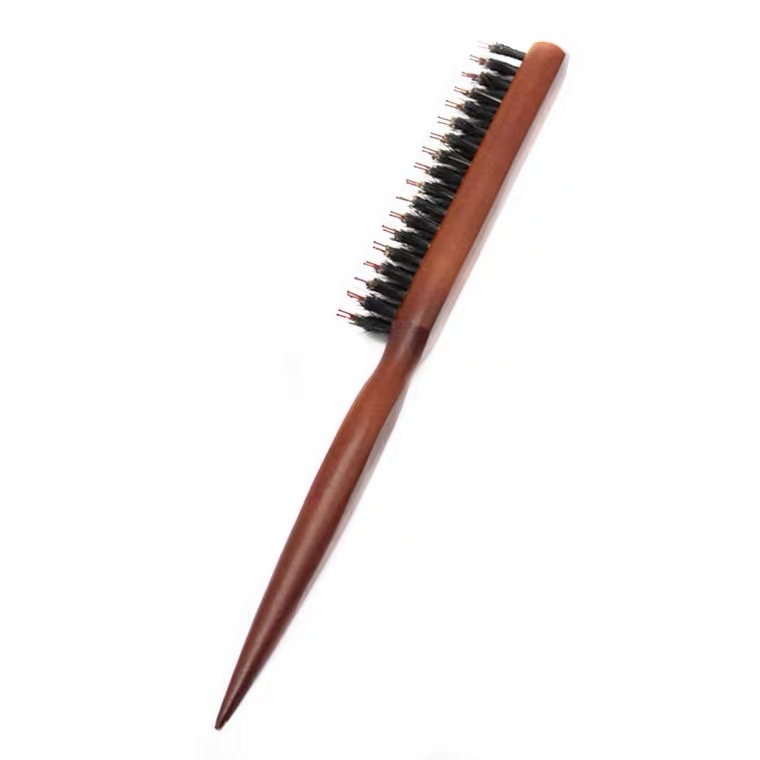 尖尾梳的梳柄尖用于挑发分发、整理发卷、调整发型轮廓线,常在包发时做轴心使用。尖尾梳用于从发根向发梢梳顺发丝,使发丝表面光洁,也用于从发杆向发根逆向(倒抜梳理发丝,使发丝交错连接。