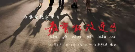 凤凰卫视出品的一部教育重头纪录片,共十集,可谓诚意之作。一位看过全集的年轻人说:“看完这套纪录片,吃尽教育体制苦头的我,长大后发现它基本没有改善,时常慨叹。然而这个片子告诉我们,仍然有一些人在做出自己的努力,星火燎原,希望时间给出他们的报偿。这样我未来的孩子以及所有的中国孩子都能活在一个更好的世界里”。