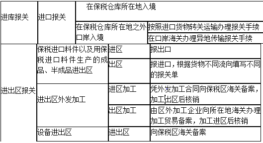 | 出库或出仓出口报关,免出口关税,免出口许可证件;出库或出仓进口报关,按货物的实际去向办理相关海关手续 | ||