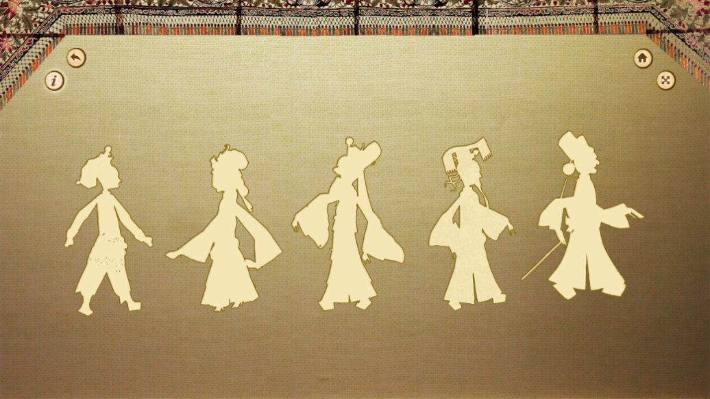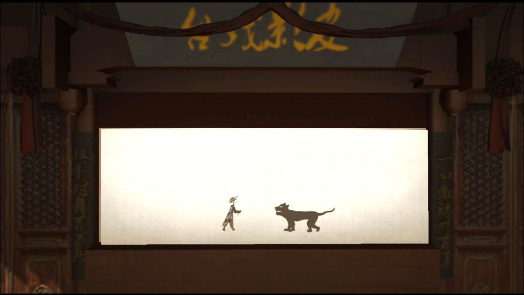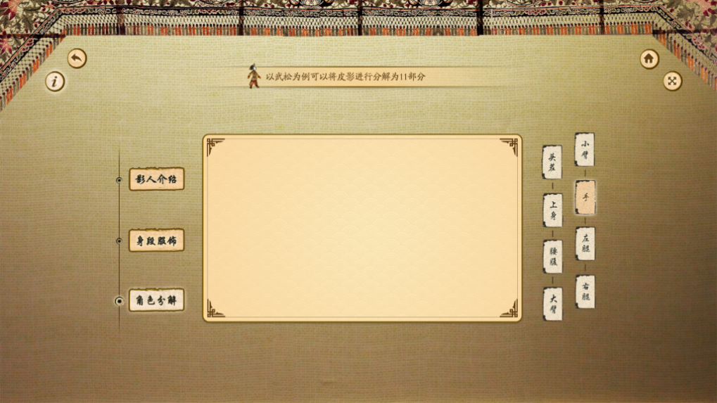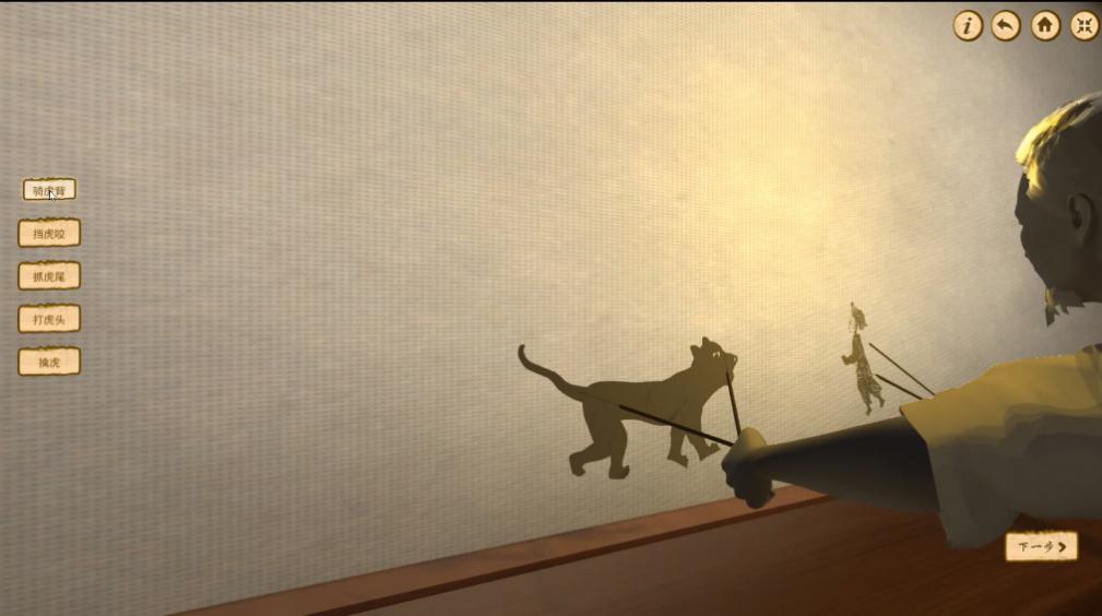 步骤13:回到引导界面,点击“皮影戏台”,观看皮影戏“武松打虎”。