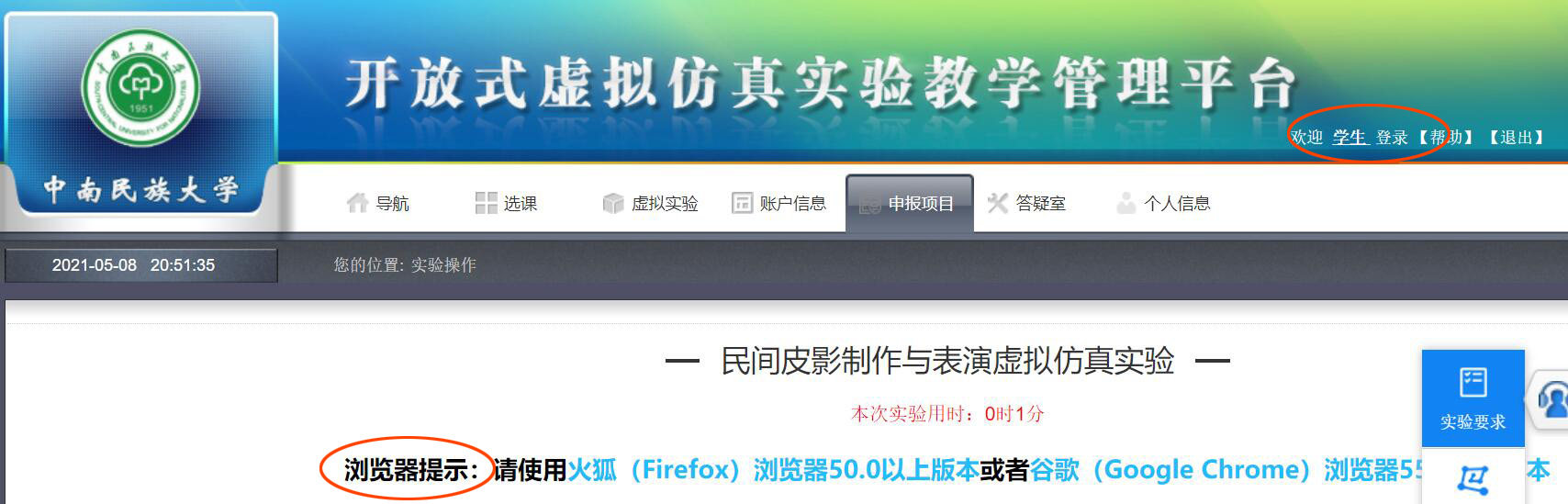 2、使用自己的学号姓名,登录系统。