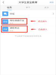 在“任务”栏——“作业”、“考试”,可以看到课程作业、考试的相关信息,点击进入就可以开始答题啦!