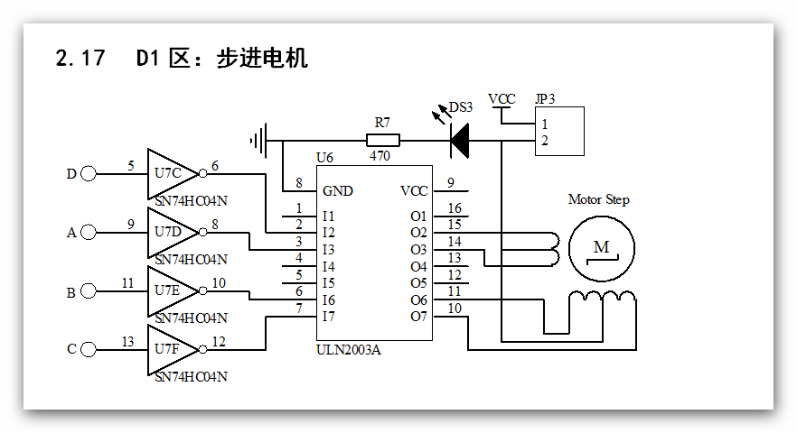 08--ULN2003驱动的步进电机电路,注意电流是灌入ULN2003,