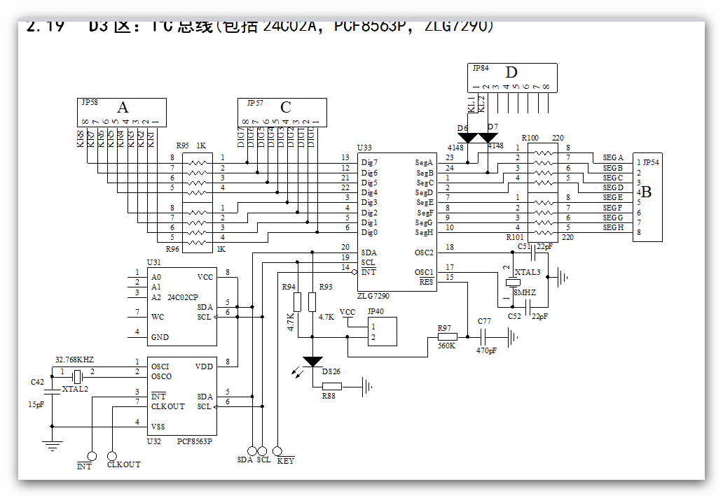 有ZLG7290数码管专用驱动芯片接线图,都是典型的