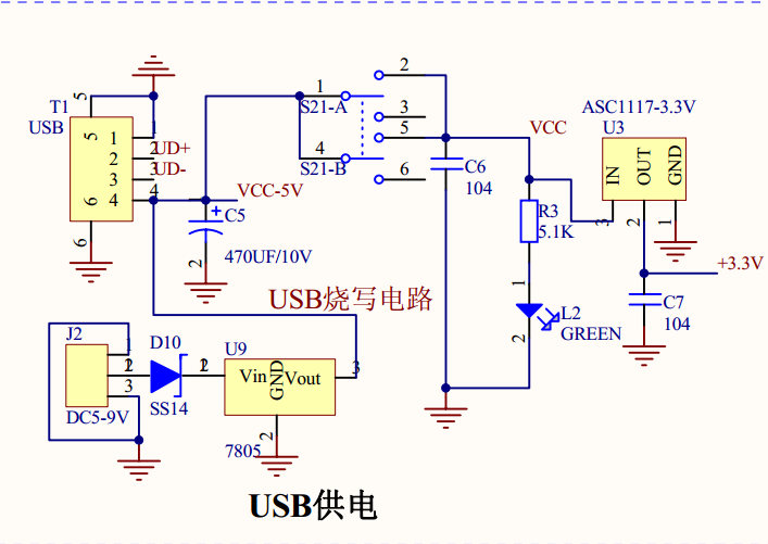 21.蜂鸣器电路,注意用的是PNP三极管,型号是SS8550