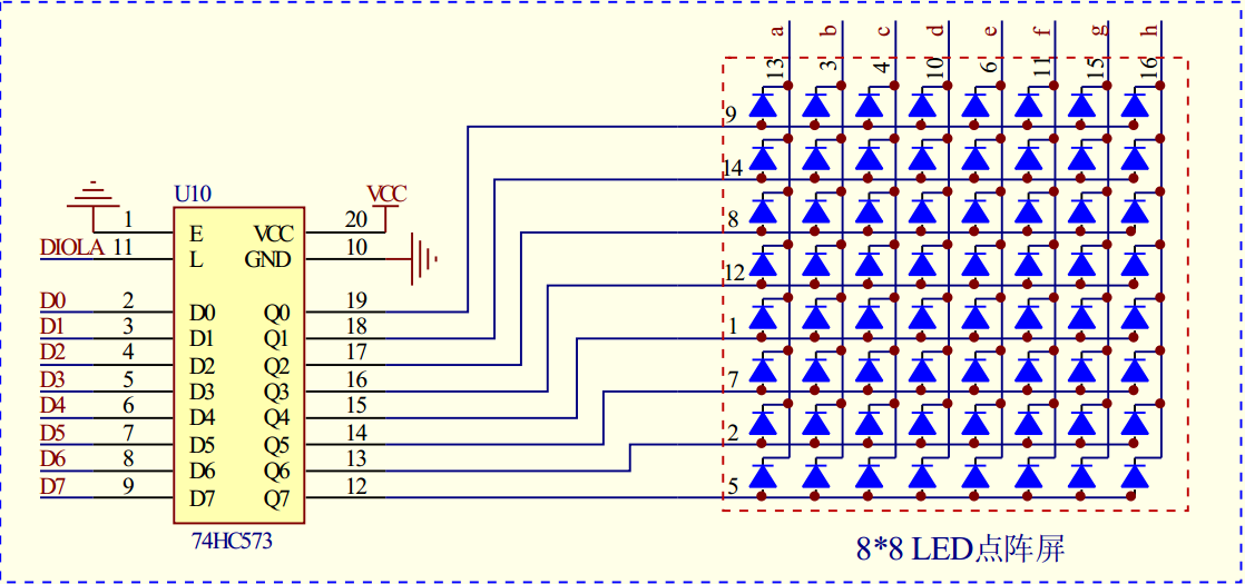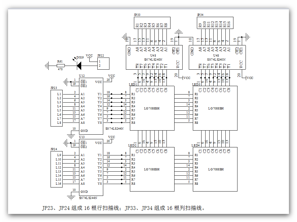 24. 典型点阵应用电路,行驱动用的74LS240,列驱动用的74论述40,不过这个硬件设计不够优化,用MAX7219专用点阵驱动芯片最好