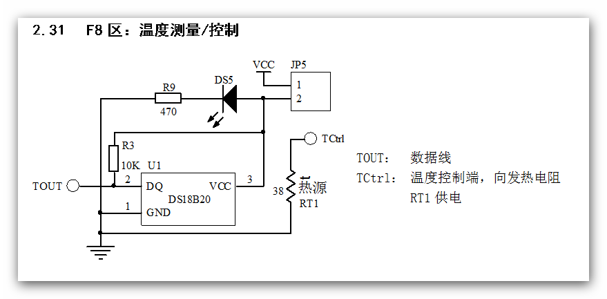 23. DS18B20典型电路,其中上拉10K电阻比不可少,数字量从TOUT读出