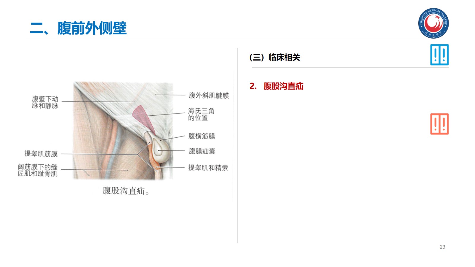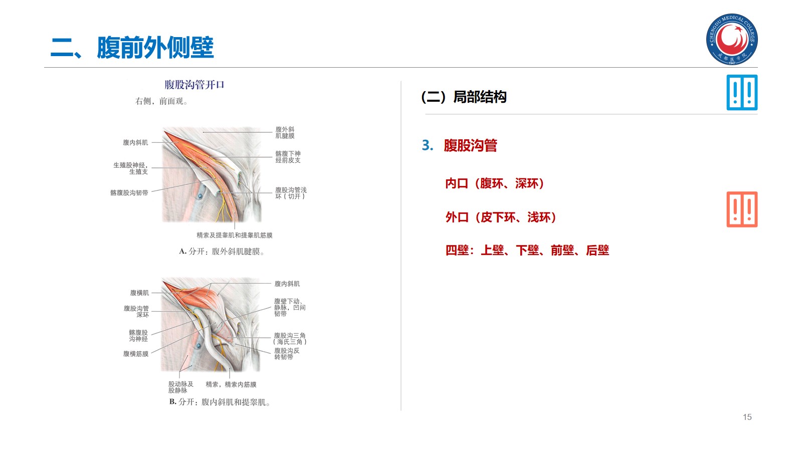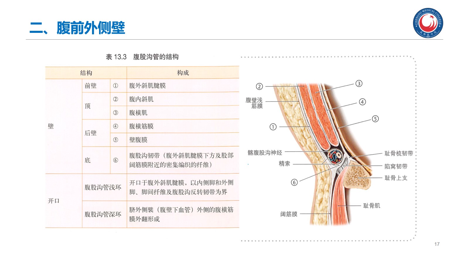 掌握:腹前外侧壁的层次、结构特点及其临床意义;腹股沟区的特点及其与腹股沟疝形成的关系;腹股沟斜疝与直疝的解剖学鉴别要点;胃的形态、位置、毗邻、神经分布及血供。