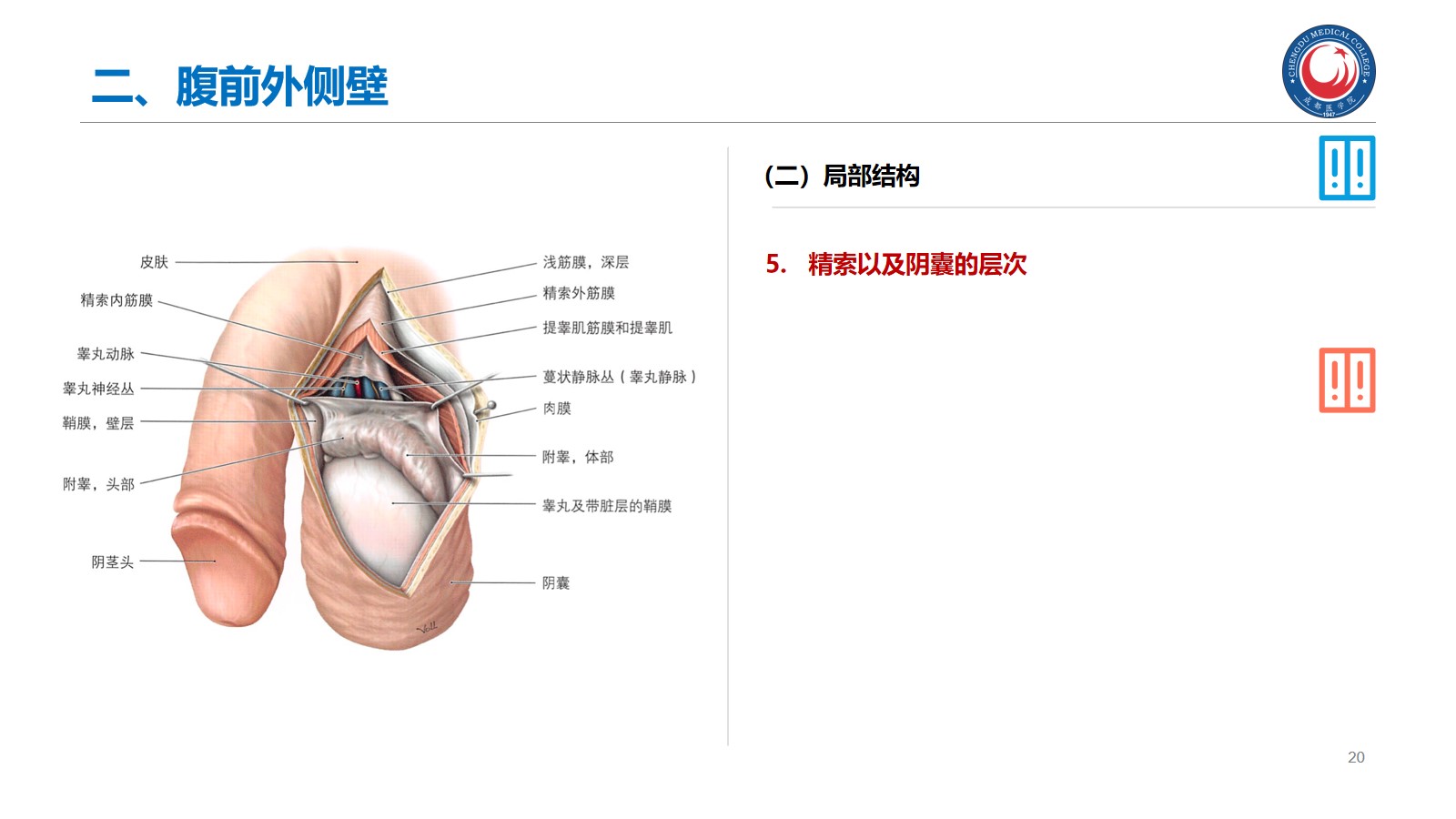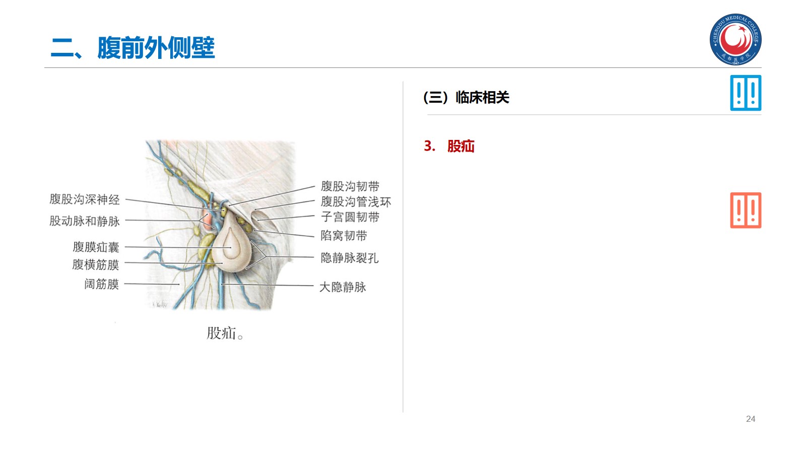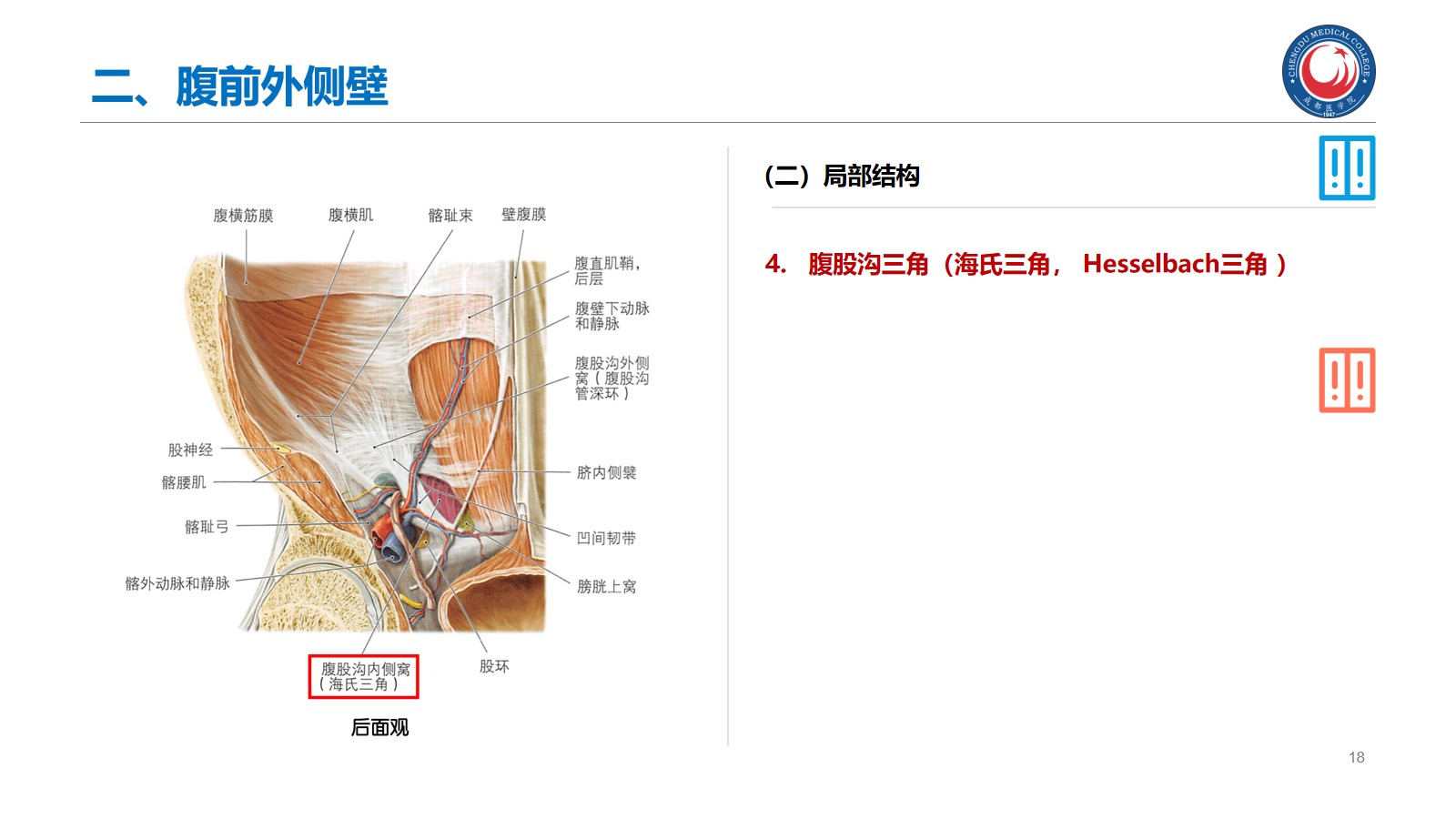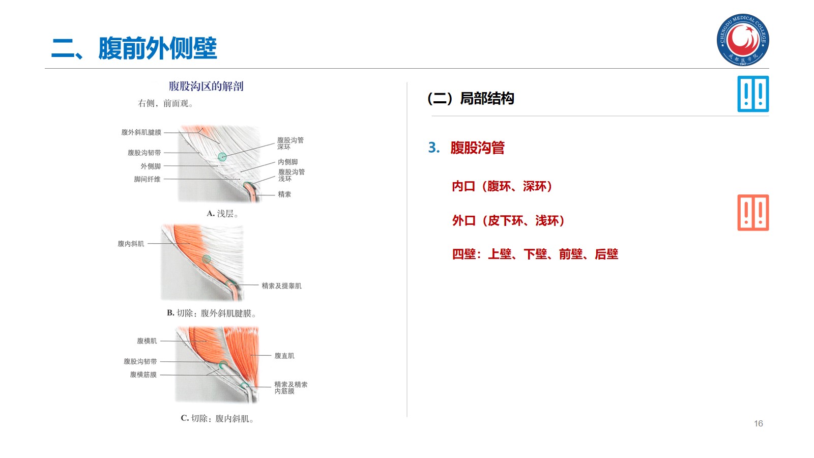 掌握:腹前外侧壁的层次、结构特点及其临床意义;腹股沟区的特点及其与腹股沟疝形成的关系;腹股沟斜疝与直疝的解剖学鉴别要点;胃的形态、位置、毗邻、神经分布及血供。
